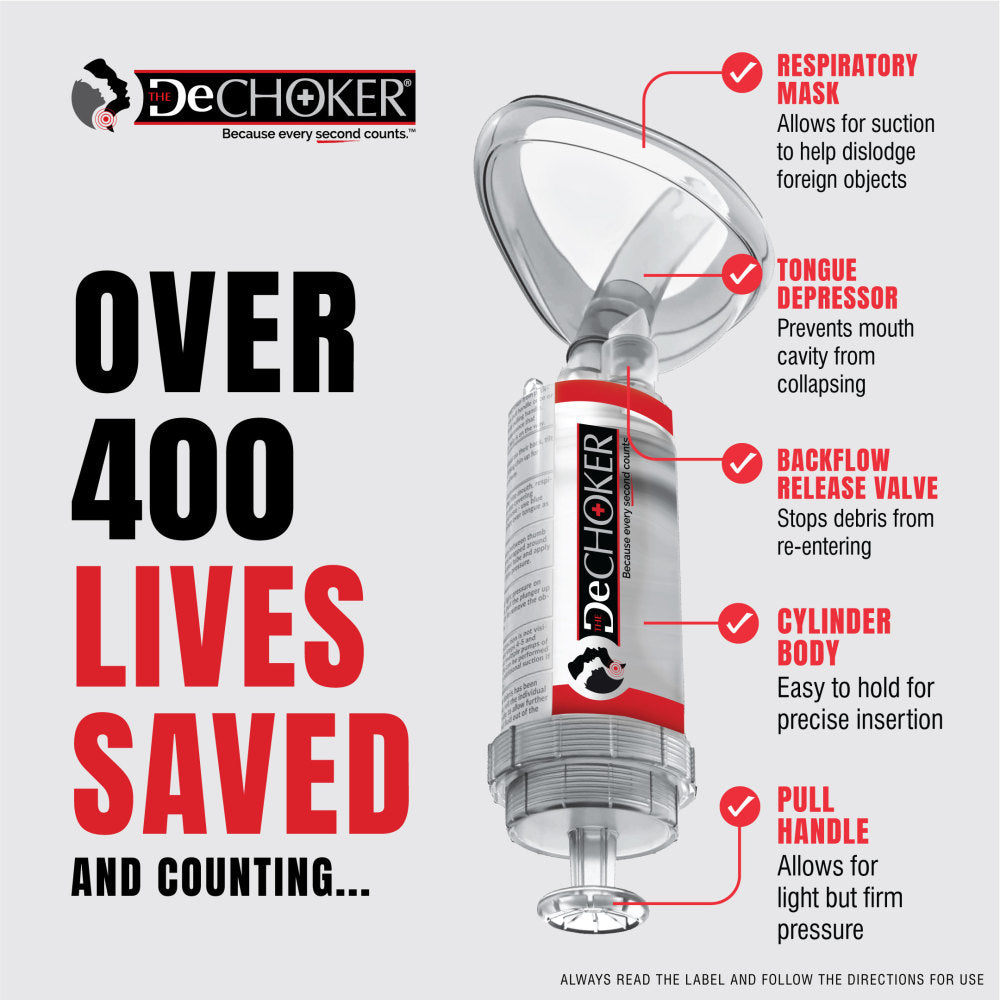 The adult single pack includes instructions for use, a Dechoker device and a mask specifically designed for adult faces.